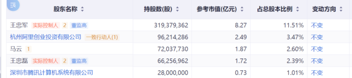 值得看重的是,华谊昆玉清晰称,公司第二大股东杭州阿里创业投资有限公司和第三大股东马云为一致动作东谈主,想象持有公司股份6.07%,可能会存在适度权不牢固的风险。