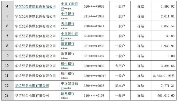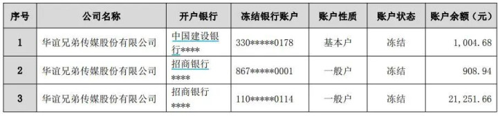 此外,华谊昆玉部分银行账户被冻结。