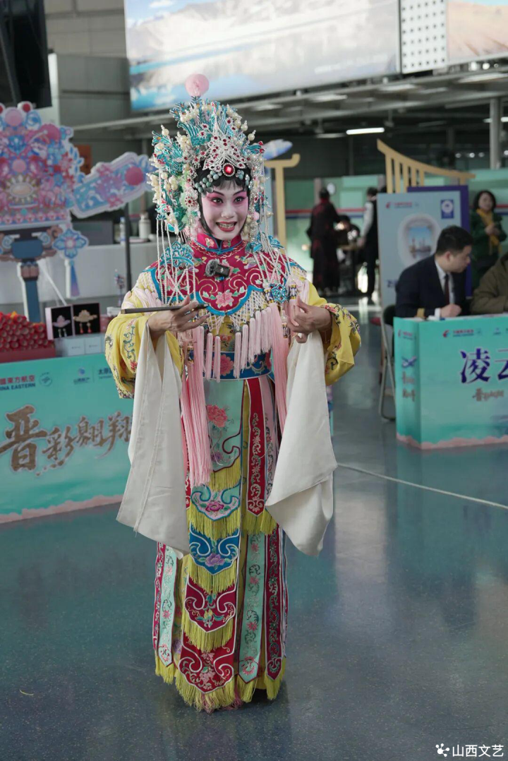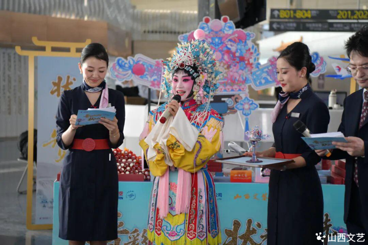 12月17日下昼,由山西文化艺术传媒中心蚁合中国东方航空山西分公司、太原外洋机场有限包袱公司共同摆布的“晋彩翱翔状元礼赞”晋文化快闪活动,在太原武宿外洋机场T2航站楼告捷举办。活动以“晋剧+航空”的编削面孔,将三晋文化融入当代化航空要害,为往还搭客呈现了一场别开生面的文化活动。