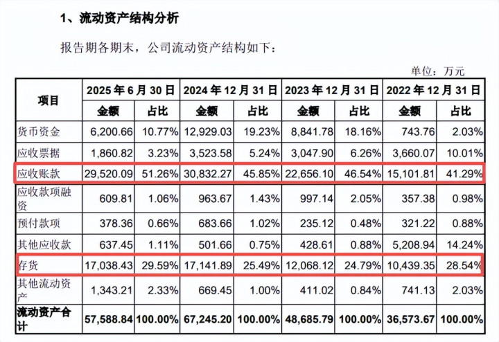 应收账款、存货双双高企,存货计提比例低于同业。天然有研复材论述期内功绩增长显然,但与此同期,应收账款、存货均双双走高,前者诀别为1.51亿元、2.27亿元、3.08亿元、2.95亿元,占流动财富比例从41.29%高潮至51.26%;后者诀别为1.04亿元、1.21亿元、1.71亿元、1.7亿元,占流动财富比例从28.54%高潮至29.59%,技术略有下滑。