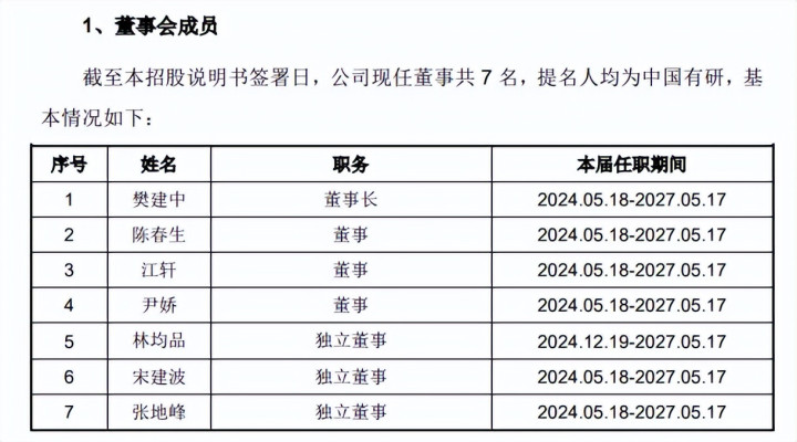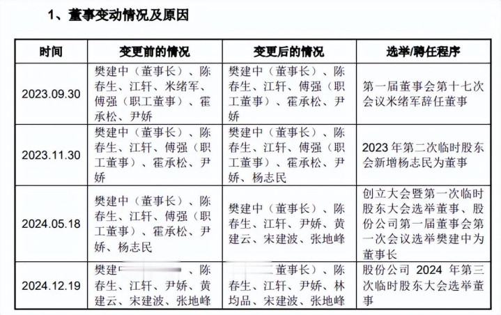 公司现任董事7名,包括董事长樊建中、董事陈春生、江轩、尹娇,零丁董事林均品、宋建波、张地峰,论述期内也发生过数次变更的情况,举例2023年9月,原董事米绪军去职,而股改完成后的第一届董事会名单中,职工董事傅强退出,新增零丁董事黄建云,但其任职7个月后去职,林均品成为新零丁董事。