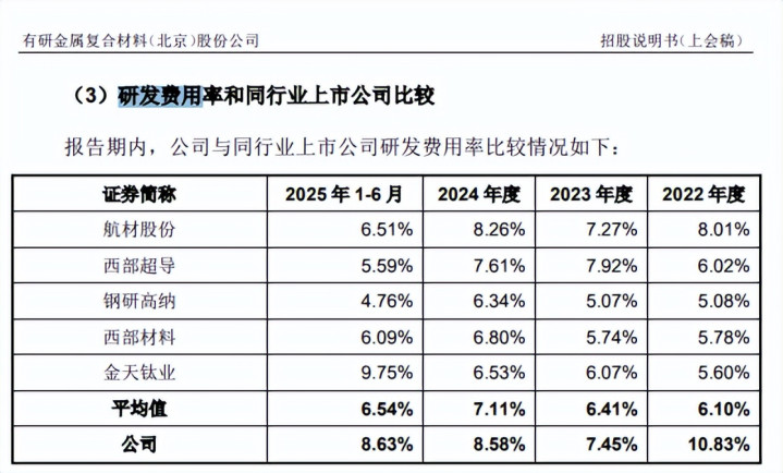 对比来看,公司研发用度率均逾越行业均值,后者诀别为6.1%、6.41%、7.11%、6.54%,期末6家同业中,仅金天钛业以9.75%的研发用度率逾越公司,其余5家同业均过时于公司,显著在研发这块是下足了功夫。