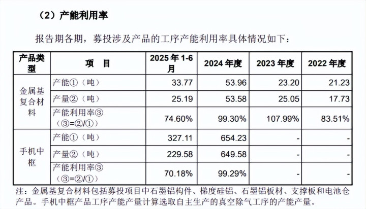 松手6月末,有研复材与募投名目居品有关的在手订单金额约为16,588.84万元,金属基复合材料、手机中框2024年产能运用率诀别为99.3%、99.29%,基本处于满产情景,但上半年则显然下滑,诀别为74.6%、70.18%。