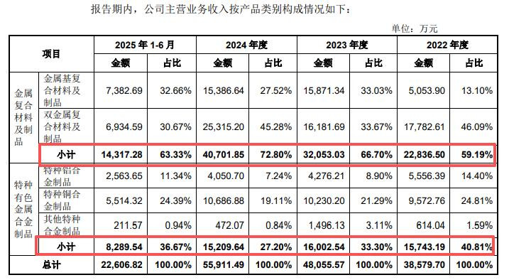 特种有色金属合金成品达成收入诀别为1.57亿元、1.6亿元、1.52亿元、0.83亿元,近三年收入占比稳降,诀别为40.81%、33.3%、27.2%,上半年则高潮至36.67%。