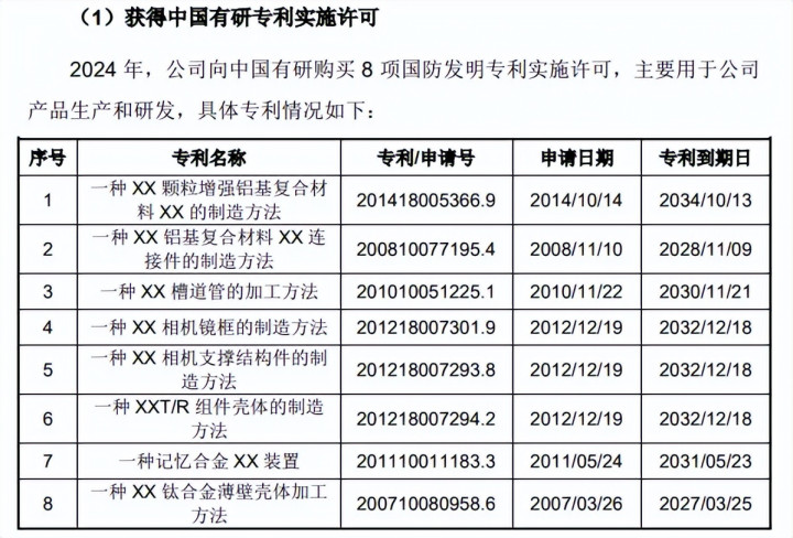 2024年,公司向控股鼓励中国有研购买8项国防发明专利执行许可,金额为348.28万元,主要用于公司居品分娩和研发。零丁接头后,有研复材将来又将得到哪些科研后果,需要交由时候来考据。