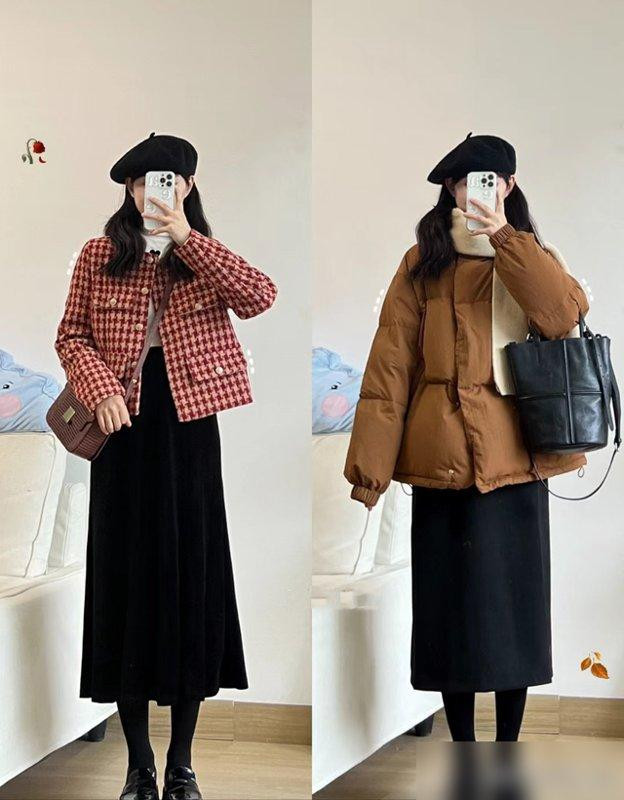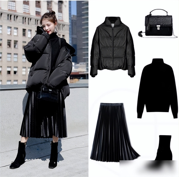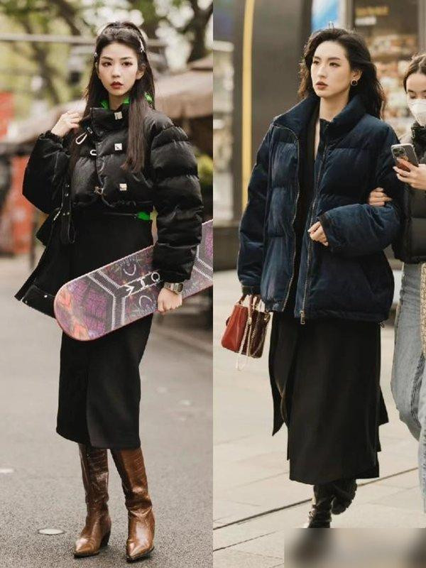 冬天也离不开小黑裙, 配羽绒服优雅猖厥, 温度和风姿并存!